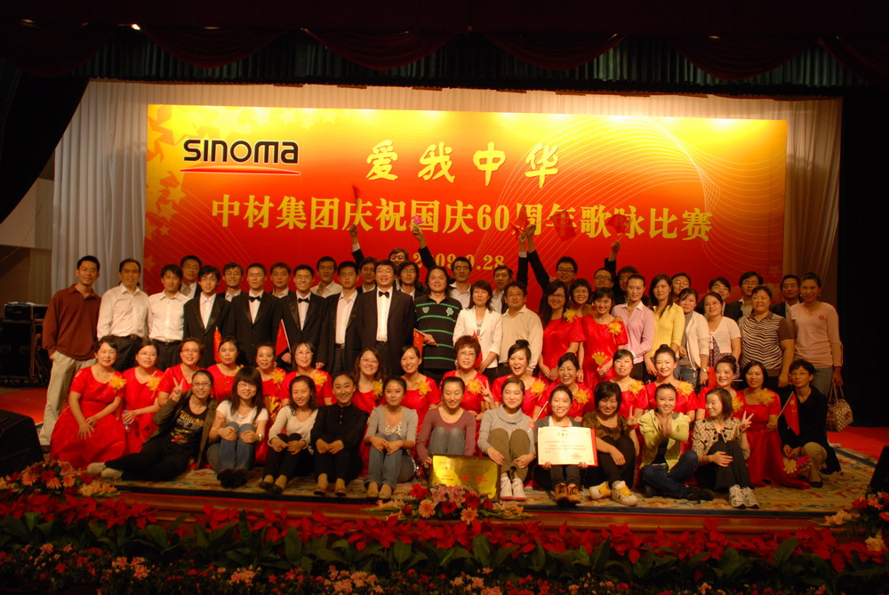 9月28日,以“愛我中華”為主題的——中材集團慶祝建國60周年歌詠比賽在北京隆重舉辦。集團領導班子和駐京津地區的14家單位共800多名員工參加并觀看了比賽及演出。