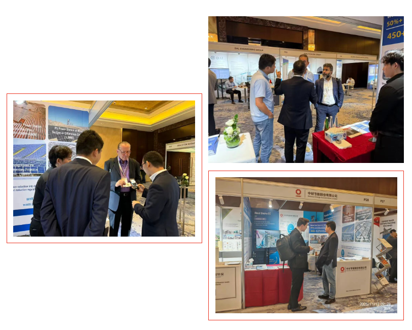 The on-site networking sessions yielded fruitful results. Sinoma Energy Conservation Limited staff visited the booths of new and long-standing customers, reviewing the operating performance of past projects with regional partners such as Saudi Arabia’s YCC and RCC, and carefully collecting suggestions on O&M optimization and technology upgrades.